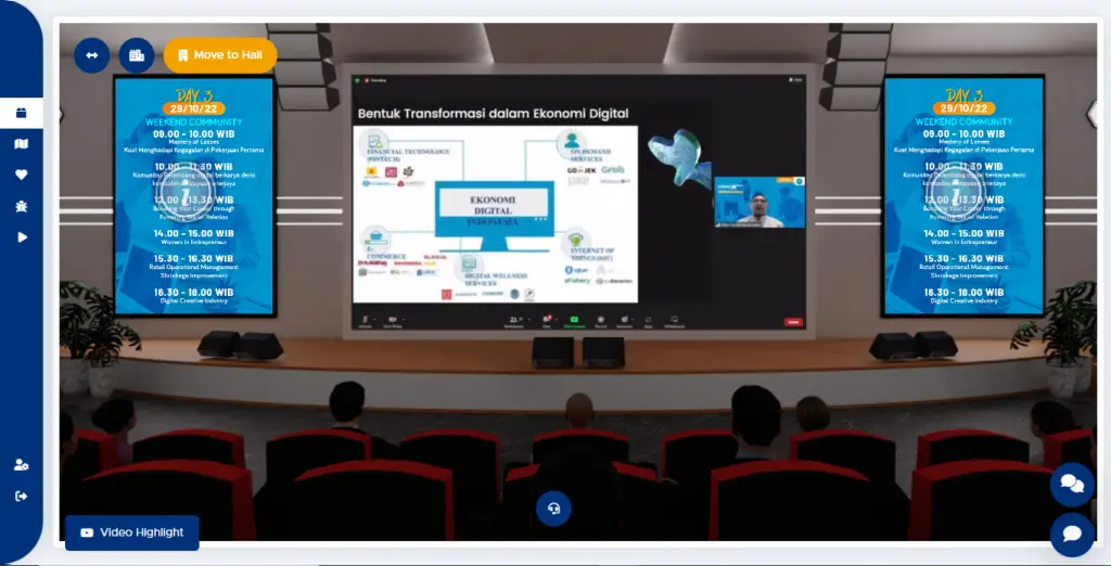 - Sesi Webinar Terpadu: Peserta dapat bergabung dengan sesi webinar langsung yang diadakan oleh dosen dan pemimpin BINUS melalui Auditorium virtual.